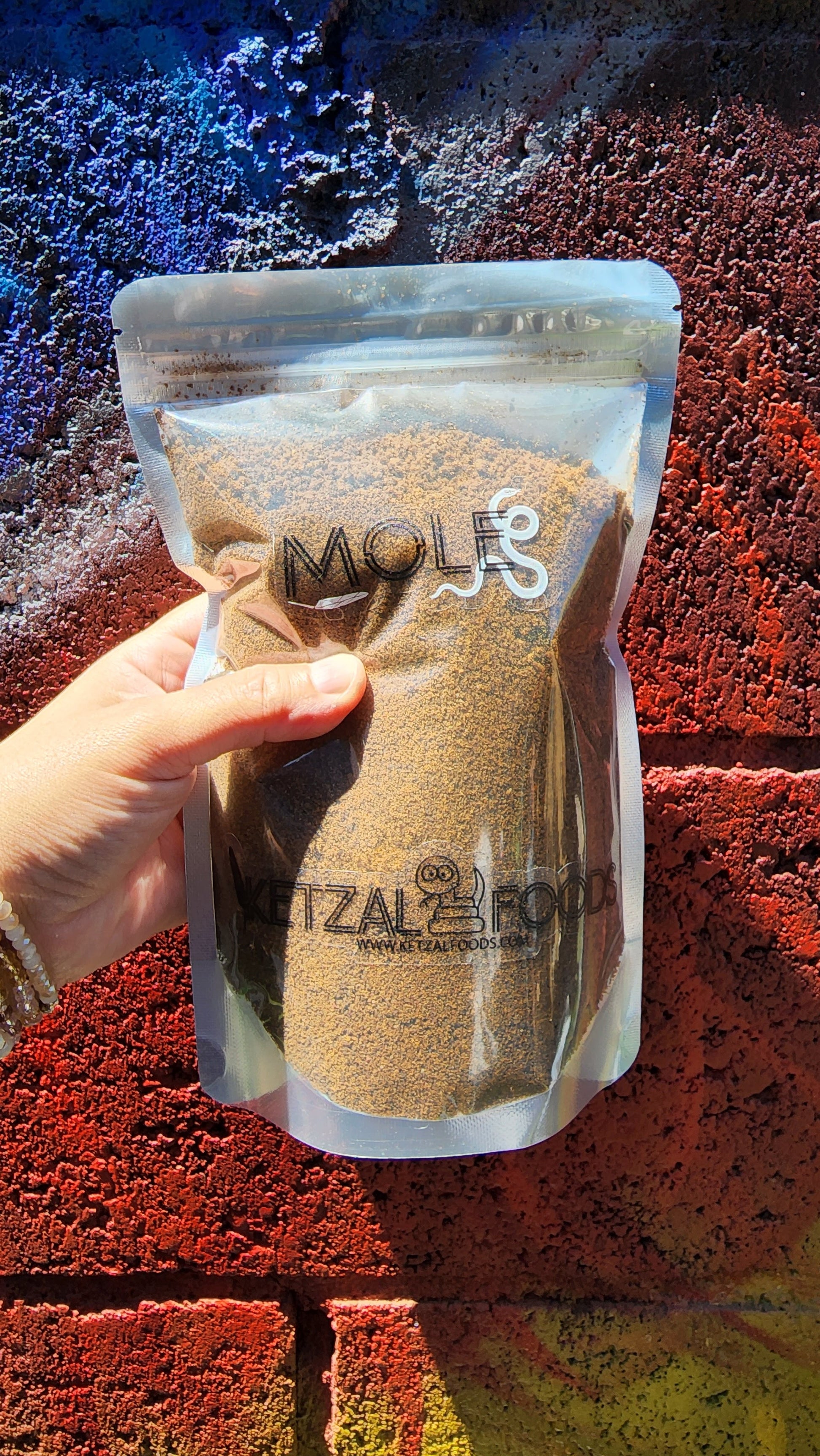 Mole Ranchero starts with our specially curated blend of chiles, such as ancho, chipotle, mulato, pasilla, criollo, and morita. Combined with spices like cinnamon, clove, black pepper, cumin, anise, chocolate, and salt, the result is a unique and flavorful mole. Vegetables like garlic, onion, tomato, and wheat flour, as well as sesame seeds and raisins, round out the dish. Simply mix 1 cup powdered mole with 2 cups of broth or water, simmer until desired thickness, add in cooked proteins and vegetables, and enjoy! A versatile sauce, Mole Ranchero can be used as a dip, rub, soup base, or refrigerated for an easy pour over sauce.